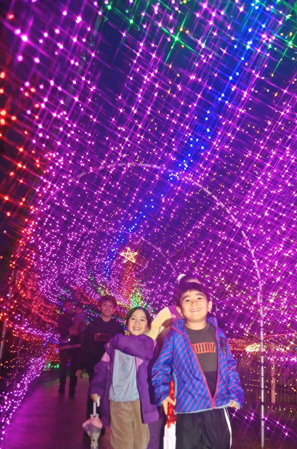 家族5人で訪れた浦添市立仲西小4年の亀濱心結(みゆ)さん(10)は「サンタさんに会えてクリスマスを楽しめた」とにっこり。弟で同2年の耀太(ようた)(8)さんは「イルミネーションがピカピカカラフルできれい」と目を輝かせた。(中部報道部・又吉朝香)