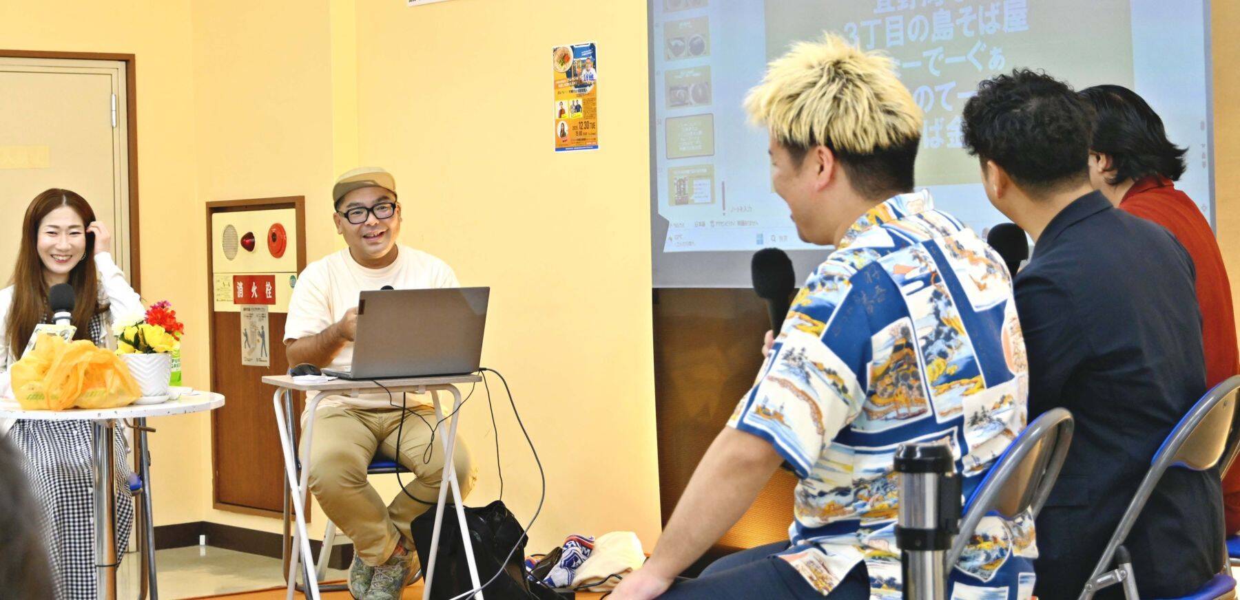 会場からは「新しい店舗がどんどん開店する理由は?」「そばとジューシーがセットになったのはいつから?」などの質問が相次ぎ、沖縄そば談議で盛り上がった。(社会部・吉田伸)