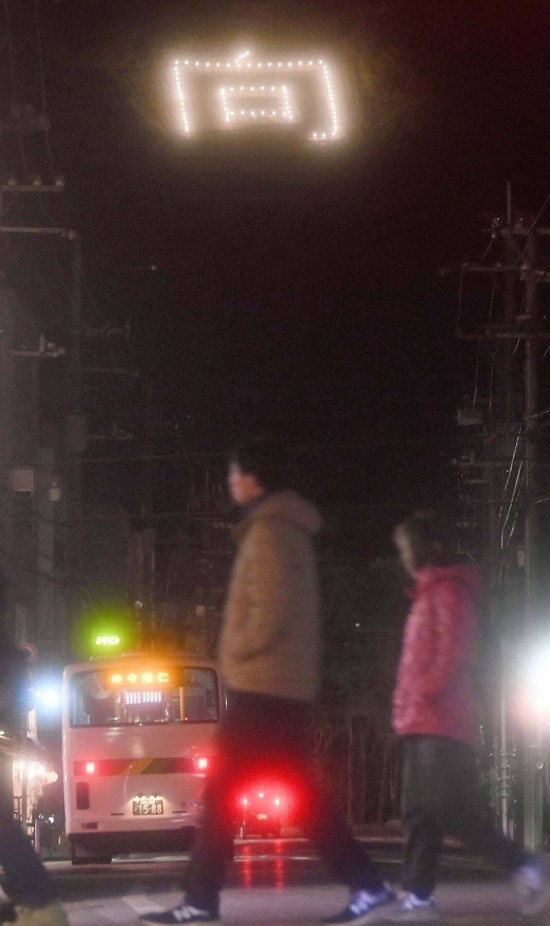 いずれも新二十歳の実行委員と協力メンバー約30人が神ヶ森斜面の草を刈り、LED電灯80個を使って昨年12月から約1カ月かけ40メートル四方の文字を作り上げた。点灯期間は例年より長く2月23日まで。連日午後6~10時、名護の夜空に「向」の文字が浮かぶ。
