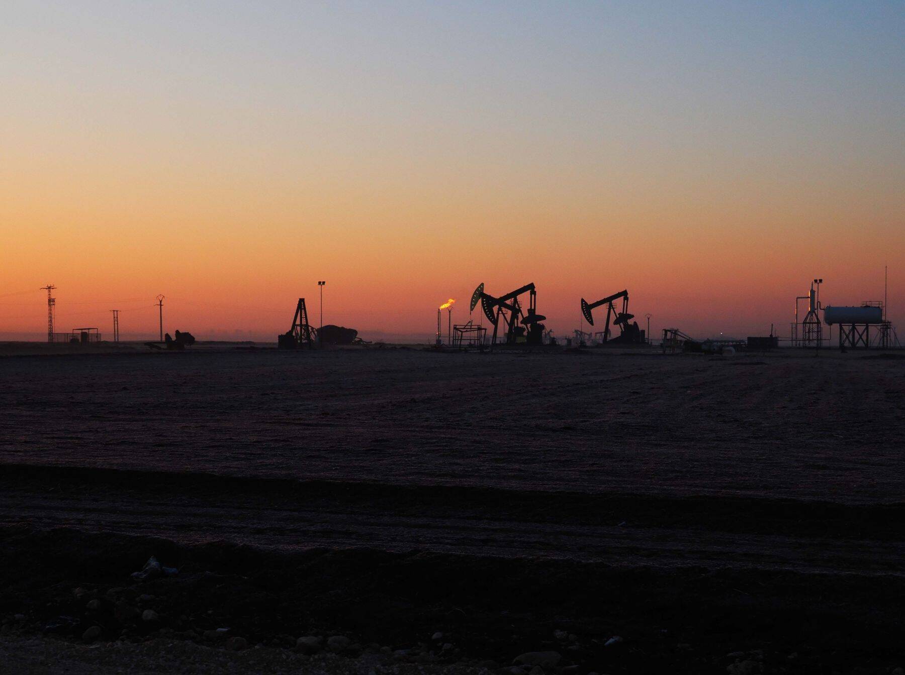 (写図説明)シリア北東部、イラク国境近くに点在する石油採掘施設