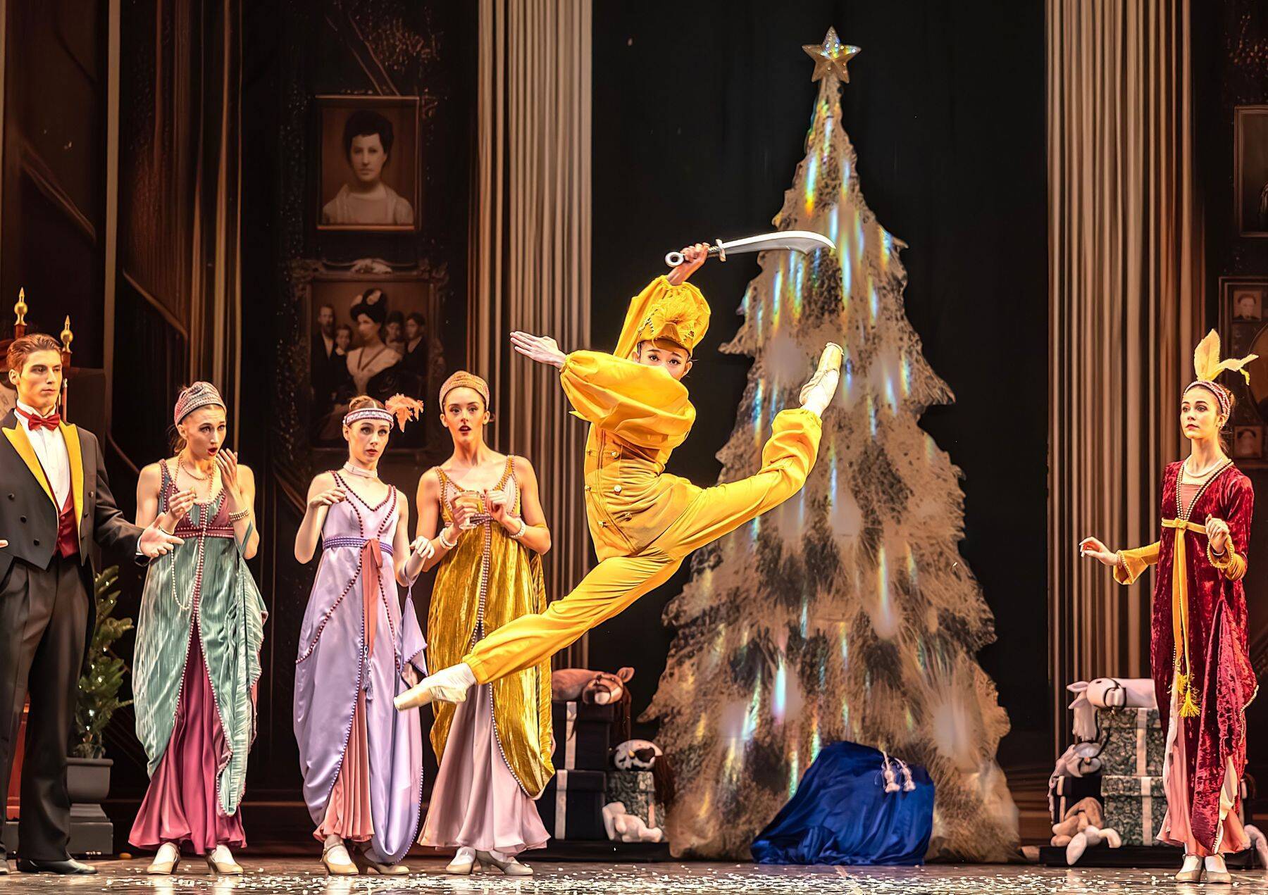 (写図説明)(右)「パイレーツ人形の踊り」を舞う丸山ほたるさん(中央)=アルバータ・バレエ団提供