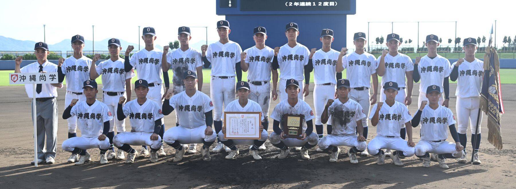 同じく九州大会で8強入りしたウェルネスは選ばれず、初の甲子園出場はならなかった。県秋季大会で優勝した沖縄尚学の選手たち=2025年10月12日、エナジックスタジアム名護">