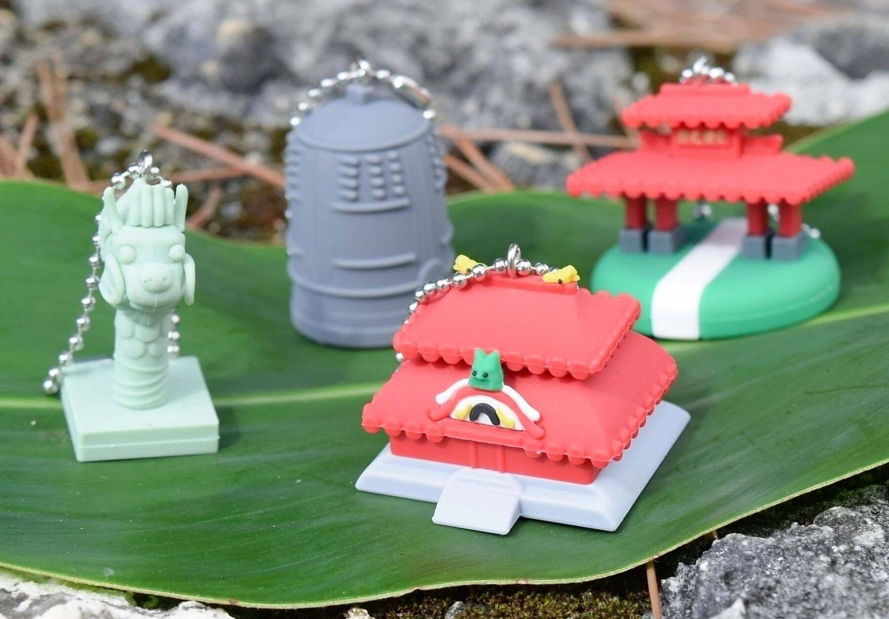 興南中学・高校の生徒でつくる興南アクト部は首里城で修学旅行生を案内している。首里城公園とは2024年8月に商品開発プロジェクトを開始。ちんすこうとコップをセットにした「首里コップクッキー」、靴下の「紅型そっくす」を販売中で、今回のチャームは最終アイテムとなる。