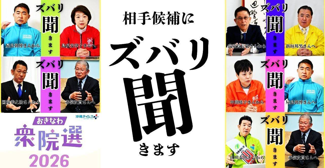 8日の衆院選投開票を前に、沖縄タイムスは沖縄1~4区に国政政党公認で立候補している15人に、選挙区で争う他候補者へ「ズバリ最も聞きたい1問」を投げかけてもらった。相手候補の直球質問に候補者はどう答えたのか。