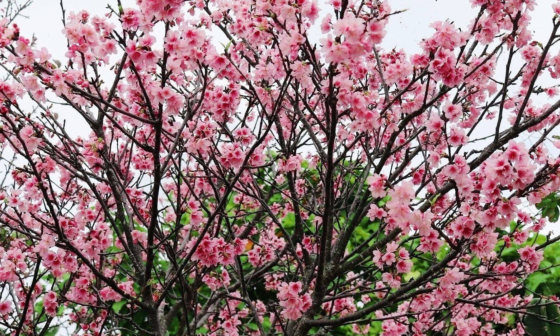 県内のカンヒザクラは本島北部で咲き始め、今年は例年より少し遅く石垣でも開花を迎えた。