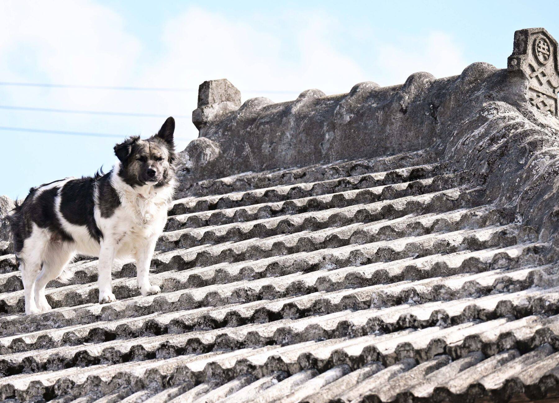 地域で有名な「シーサー犬」のルミちゃん。