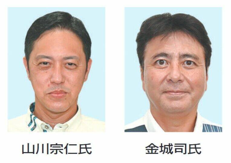金城氏と山川氏は行財政改革や地域振興策などを掲げ、支持を訴えた。金城氏は町役場に30年間勤めた行政手腕をアピール。山川氏は企業経営の経験を踏まえた町づくりの構想を訴えた。