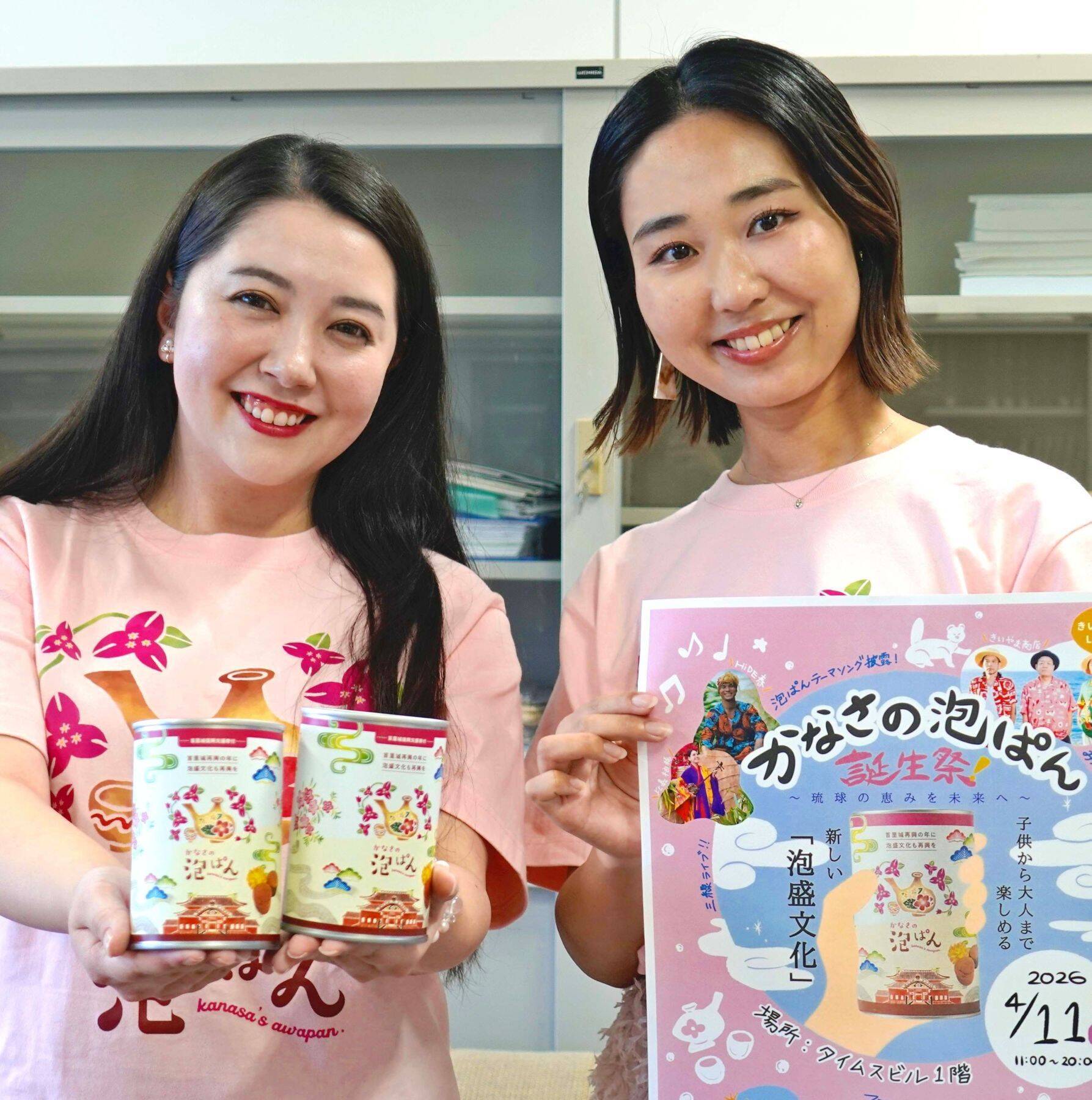 泡ぱんはデニッシュパンのような生地で、泡盛の原料の黒こうじ菌を使用。アルコールは含まれていない。缶詰のため長期保存できるのも特徴で、防災食として活用できる。