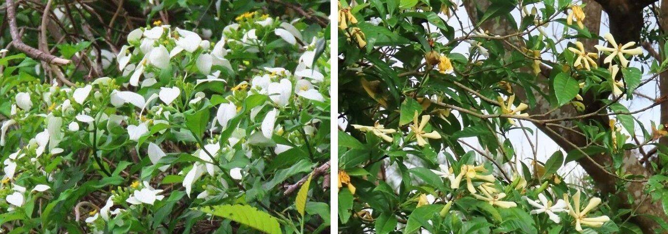 (松本アケミ通信員)(写真左から)コンロンカ、クチナシ">
