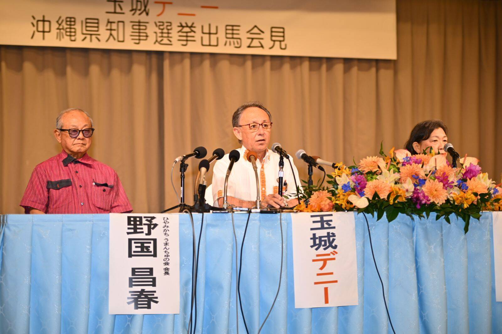知事選では経済団体や自民党が推す元那覇市副市長の古謝玄太氏(42)も立候補を表明。玉城氏は自らが新基地建設に反対し、古謝氏が容認する姿勢であることを踏まえ「辺野古は大きな争点の一つになり得る」との考えを示した。