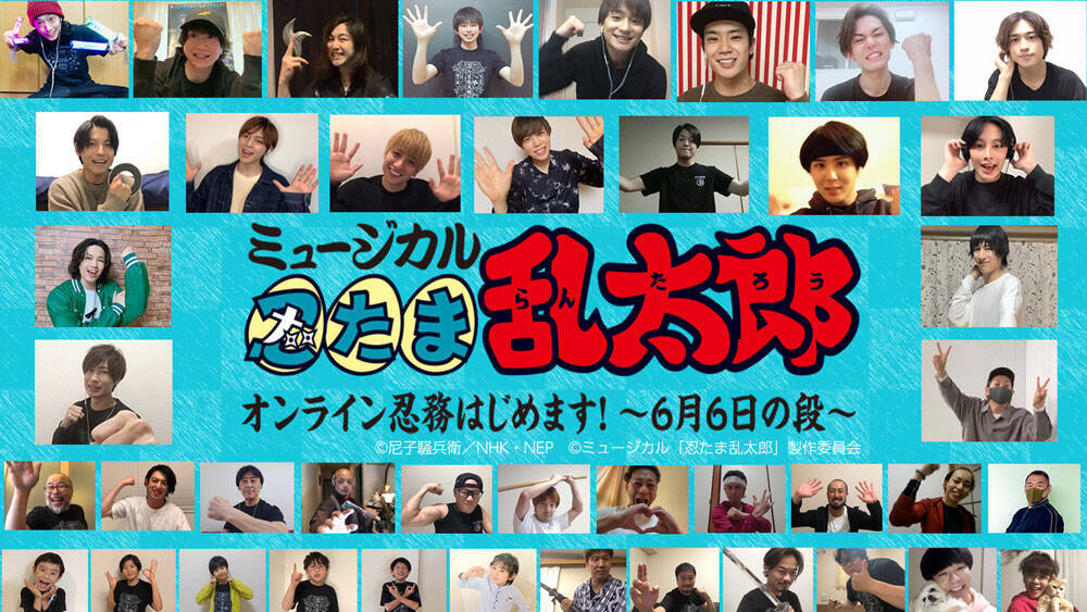 緊急事態宣言が解除され、少しずつ生活が日常に戻りつつありますが、まだまだ劇場での公演再開は先が見通せない状況。早く公演再開を望むのは、ファンもキャストも同じ。そこで第10弾と第11弾のキャストがそれぞれの自宅からリモートで集まり、生配信する番組「ミュージカル 忍たま乱太郎 オンライン忍務はじめます!~6月6日の段~」が企画されました。