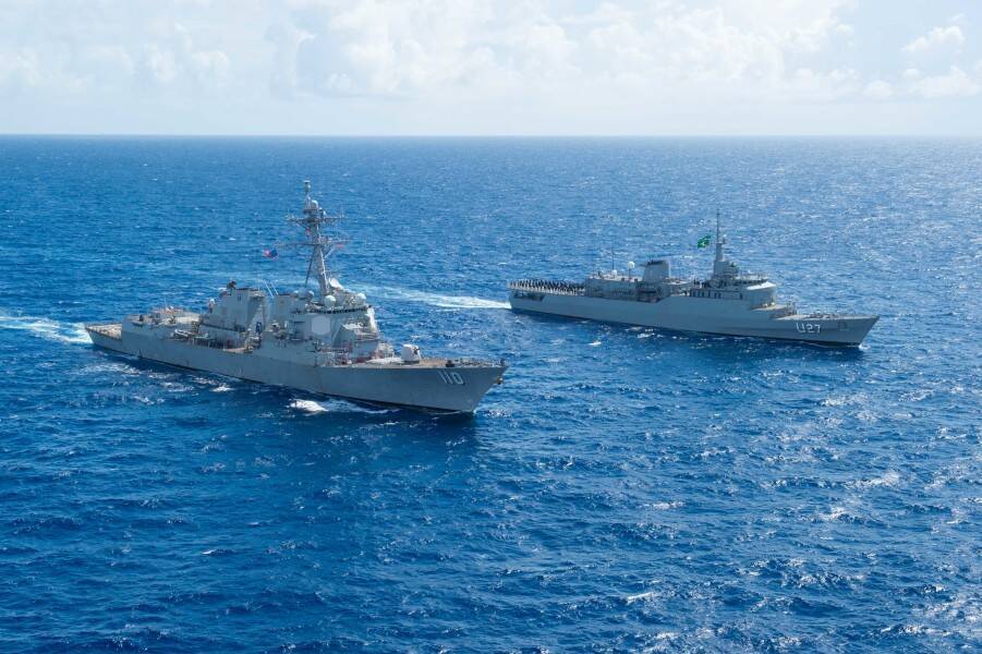 アメリカ海軍の駆逐艦ウィリアム・P・ローレンスが2020年10月28日(現地時間)、カリブ海でブラジル海軍の練習艦ブラジルと共同訓練PASSEXを実施しました。練習艦ブラジルは士官候補生を乗せた実習航海中で、学生たちは任官後も続く国際協力の取り組みを経験しています。