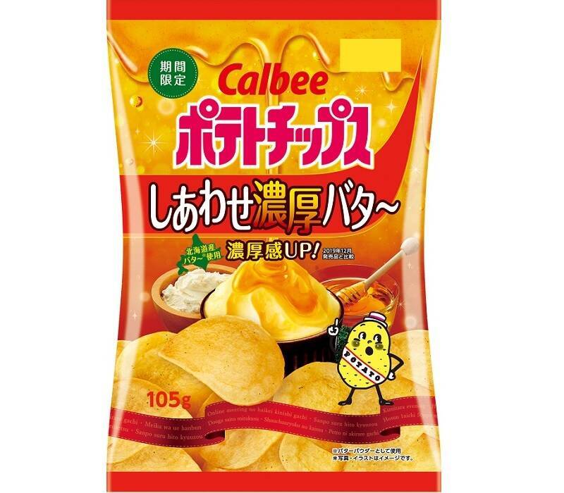 カルビーは、現在発売中の人気商品「ポテトチップス しあわせバタ~」を、より濃厚に仕上げた新商品「ポテトチップス しあわせ濃厚バタ~」(想定価格は税込200円前後)を、11月30日から、全国のコンビニ限定&期間限定(2021年1月下旬終売予定)で発売します。