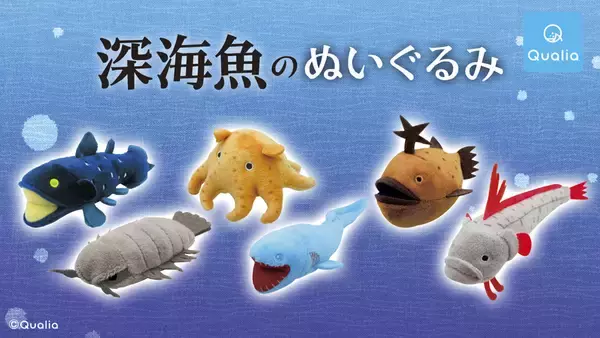 “イチからの丁寧な作り込み”で人気を博している、株式会社Qualia(以下、クオリア)の看板カプセルトイ「ぬいぐるみシリーズ」から新たに、「深海魚のぬいぐるみ」が12月5日に登場します。価格は1回300円(税込)で、全6種です。