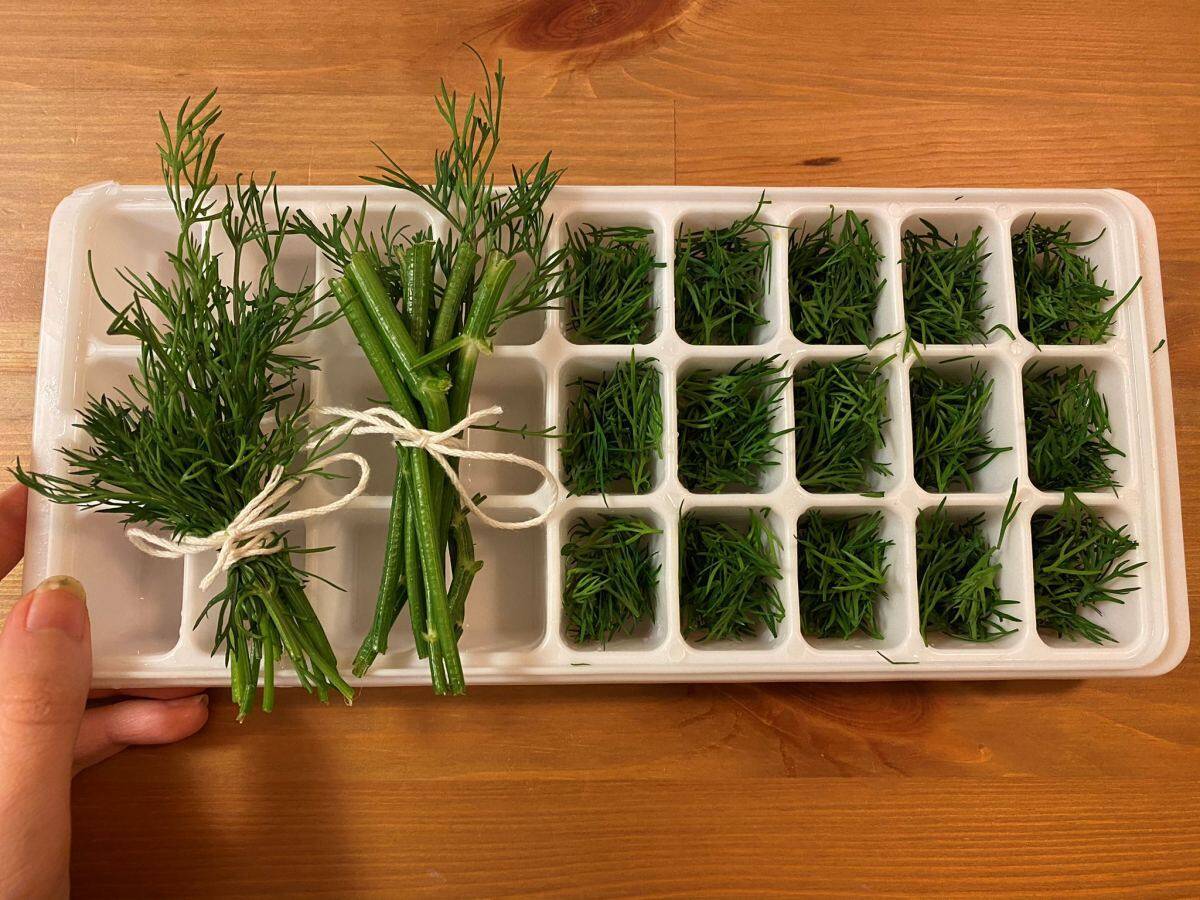 フレッシュハーブを大量GETしたときは製氷皿にオリーブオイルで凍らせとくと無駄なし♀️ディルのストック嬉しい~ pic.twitter.com/XLVu8QMbwk