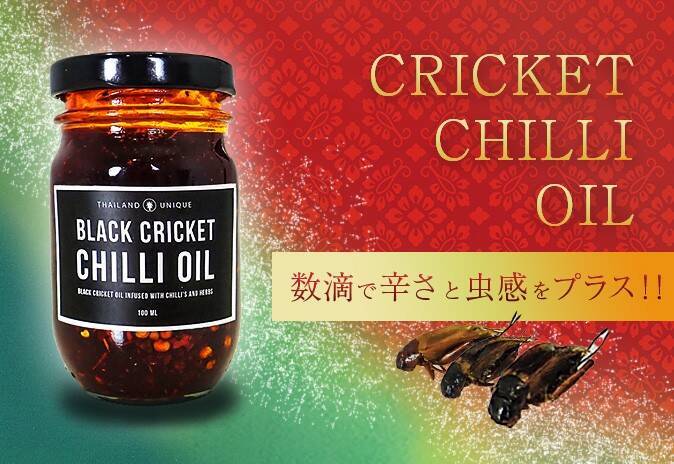 ラー油のようにシーズニングに使えるチリオイル(100ミリリットル:税抜2200円)は、フタホシコオロギのオイルがベース。昆虫食の本場タイにあるBRC/HACCP認証工場で加工されています。