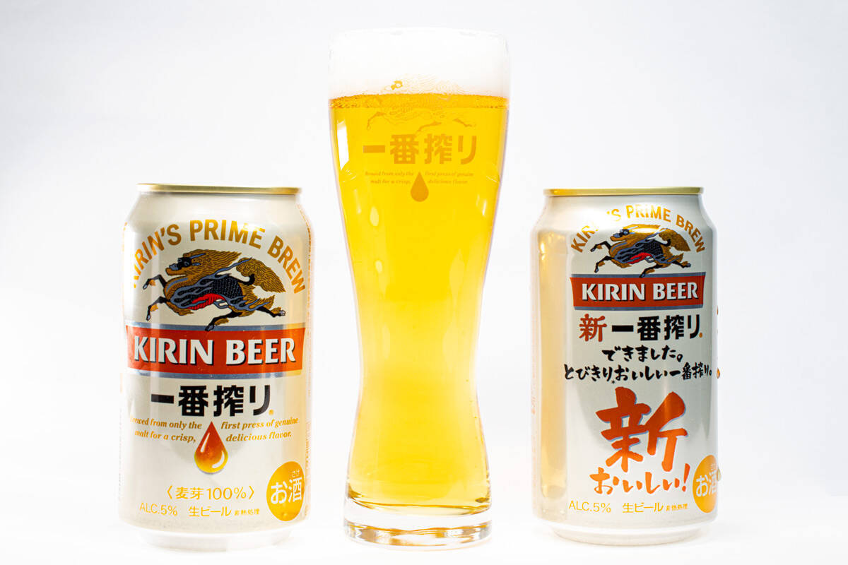 ぜひ実際に飲み比べてみてください、とのことで、事前に送られてきた従来品とリニューアル品、2種類の「一番搾り」を比較してみることに。グラスに注がれた見た目は変わりません。