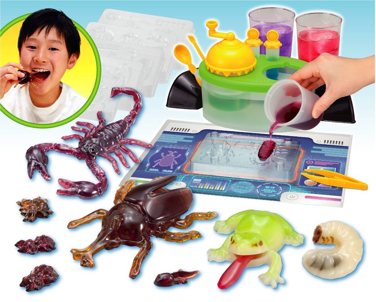 「ドキッとステーション」は本物と見間違えるほどリアルな“昆虫グミ”や“魚釣りグミ”など、ドキッとするような面白いグミが作れる商品。カブトムシは胴体をココアで、羽をコーラでつくると光沢感のあるリアルなカブトムシが再現できるのだとか。