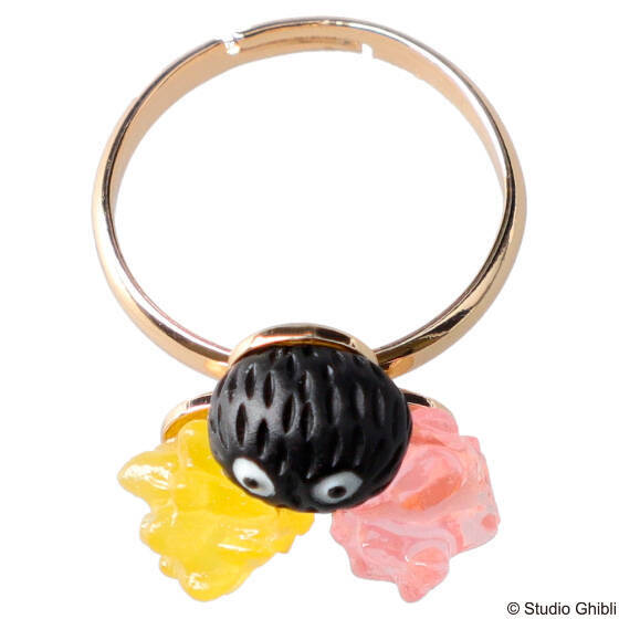 映画では石炭などを持って運ぶ細長い手足が特徴的な「ススワタリ」ですが、アクセサリーになった「ススワタリ」は手足をしまって丸いフォルムに。「となりのトトロ」に登場する「まっくろくろすけ」を彷彿とさせるチャーミングな姿で、色とりどりのコンペイトウと一緒にアクセサリーになりました。