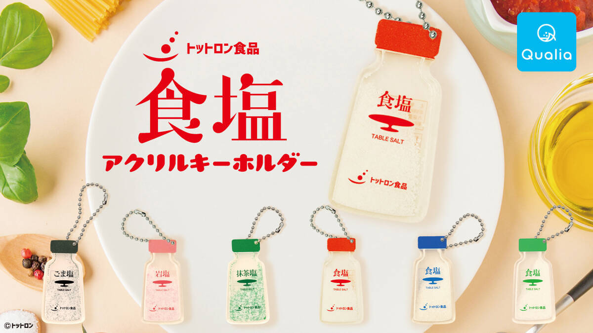 カプセルトイの企画・製造を行っている株式会社Qualiaより、食卓塩をモチーフにした「食塩アクリルキーホルダー」が登場。価格は1回300円で全6種類。