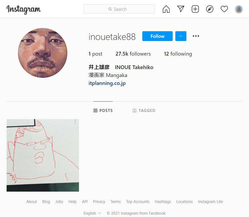 「SLAM DUNK」や「リアル」、「バガボンド」など人気漫画の作者として知られている漫画家の井上雄彦さんが、ひっそりと?Instagramを10月11日に開設していたことを27日にTwitterで報告。すでにフォロワー数は2万人を超えています。