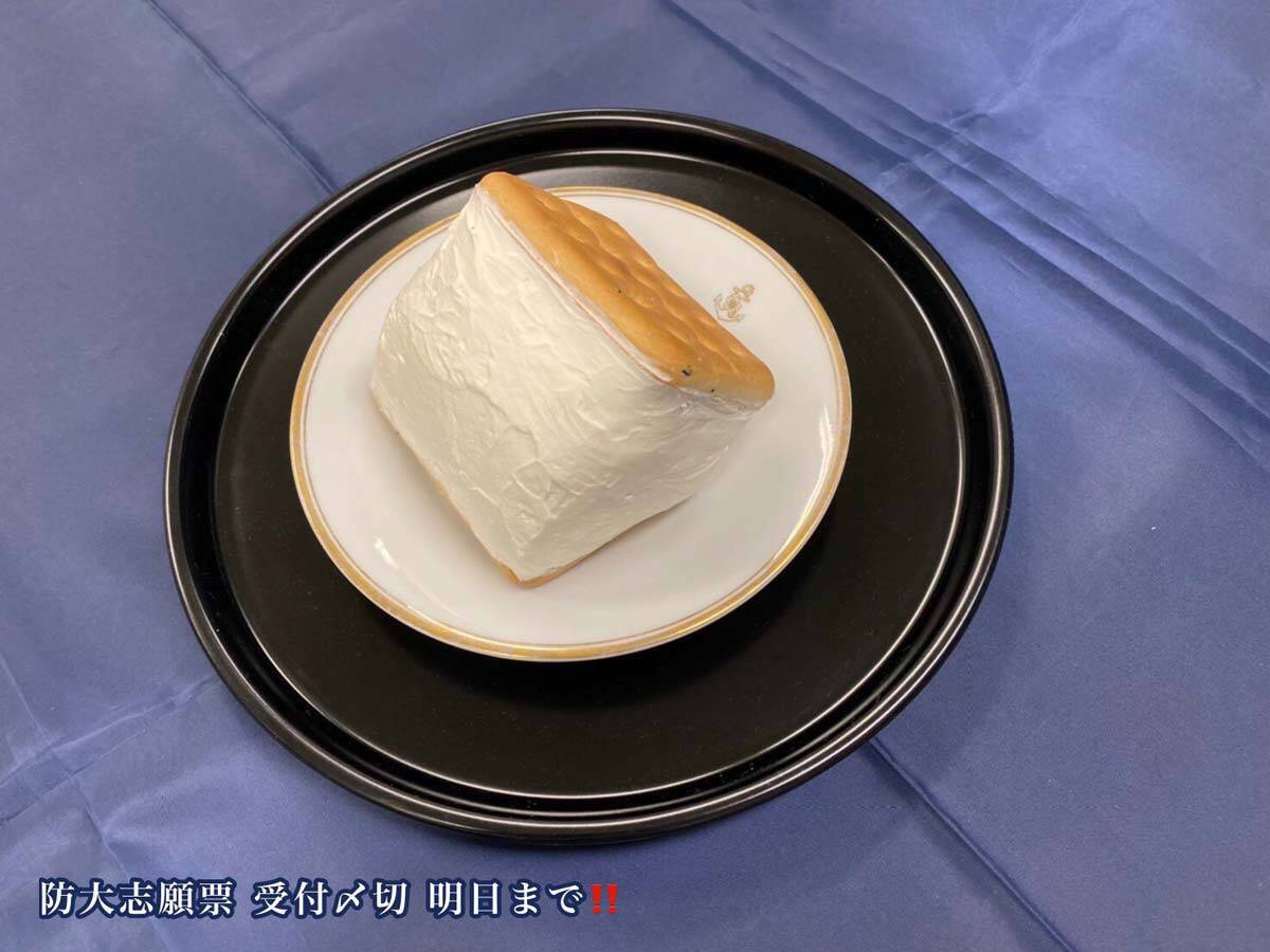 努力の甲斐あって、翌朝に本部長からのOKが出たそうですが「前日作成の乾パントッツォは誰も食べたがらず……乾パンも湿気ってしまい、イマイチ……」と担当者さん。クリームの水分が乾パンを中途半端に湿らせてしまい、食感が悪くなったようです。