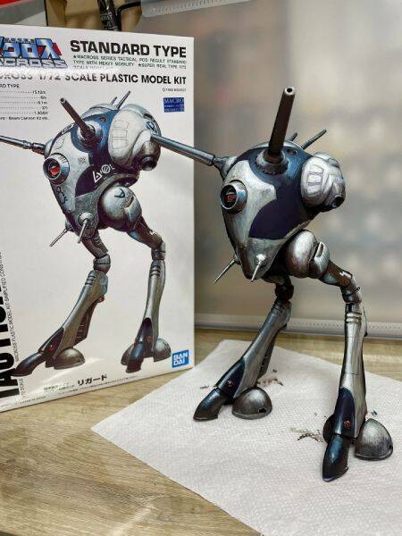 「良くなってきたんじゃなかろうか?」とつぶやきつつ、作品を投稿した前多さん。今回は、アニメ「超時空要塞マクロス」にて、ゼントラーディ軍が使用する架空兵器「リガード」のプラモデル「1/72 標準量産タイプ:ワンマン戦闘ポッド リガード」を使用しています。