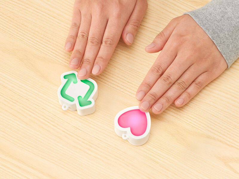 「物理的に押せる!SNSタッチライト」は、SNSのアイコンボタンを模したライト。マークと押すと、アイコンさながらにライトが点灯し、「いいね」ボタンや「RT(リツイート)」ボタンが物理的に押せてしまうユニークな商品です。