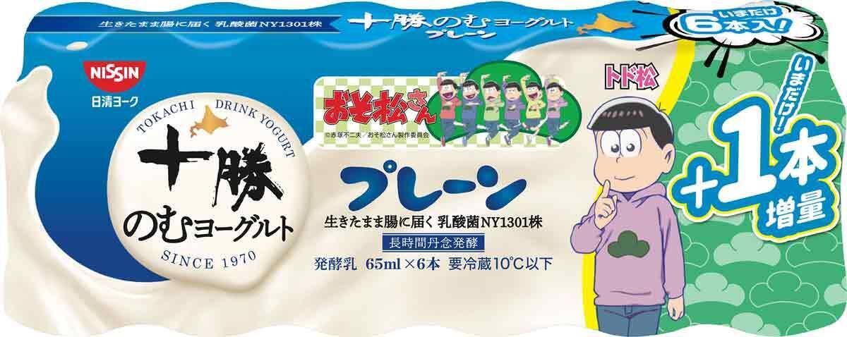 日清ヨークの「十勝のむヨーグルト」シリーズに、アニメ「おそ松さん」限定パッケージが登場。2022年6月27日より、沖縄を除く全国で発売されます。