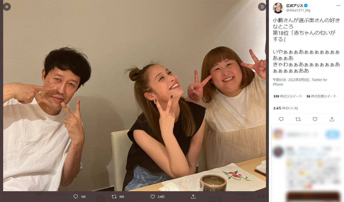 ※画像は広瀬アリスさんと小籔千豊さんの公式Twitterのスクリーンショットです。