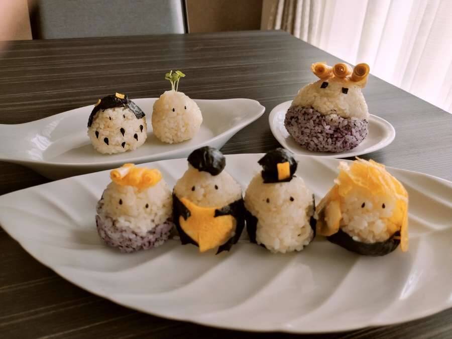 それは、作中に登場するキャラクター達をかわいくアレンジしたおにぎり。材料の種類は少量ながらもうまく特徴が捉えられているため、ファンならきっとどれが誰だかすぐにわかってしまうはず。グレートですよこいつはァ!