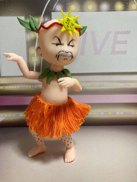 そんなアクの強いキャラクターとは対照的に、スキンヘッドに草冠と腰みののコスチュームという、さっぱりさっぱり~な風貌がキタキタおやじ。「入門にピッタリでしたね」と、ママりこさんは、セリアで販売展開されている「ドールボディ」で再現に挑戦。