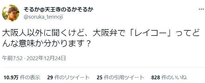 「大阪人以外に聞くけど、大阪弁で『レイコー』ってどんな意味か分かります?」