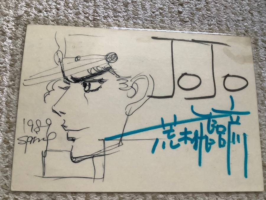 それは何と、1989年「第三部」連載当時に書かれたと思われる、作者「荒木飛呂彦」氏のサインと「空条承太郎」の横顔のイラスト。こんなレアなものが今も実在していたとは……これには思わず「ブラボー!おお……ブラボー!」と言わざるを得ません。