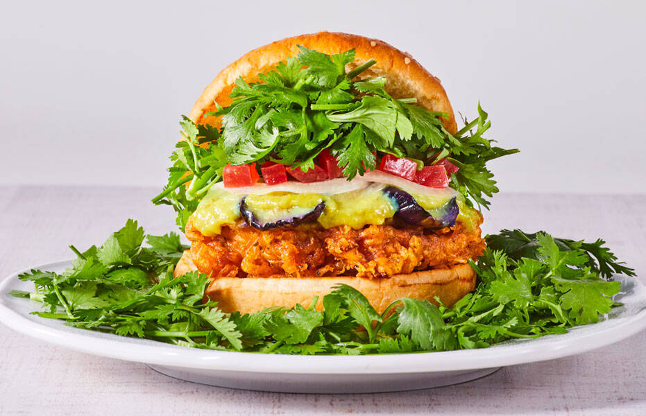 パクチーを6倍盛りに増量した「パクチーチキンバーガー グリーンカレー/パクチーチキンバーガー トムヤムクン パクチー6倍」 の価格は各税込840円。