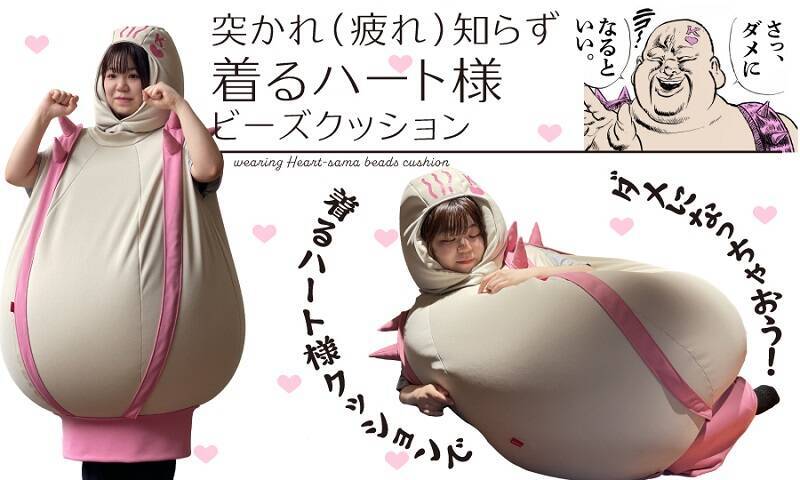 そして、なんといっても世代にとってたまらないのは「突かれ(疲れ)知らずハート様着るビーズクッション」。