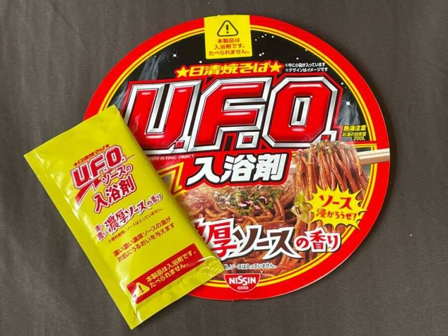 お風呂から上がった後は、体からほんのりソースの香りが感じられ、身も心もU.F.O.の麺になったような気分。U.F.O.が好きで好きでたまらない方にはぜひこの感覚は一度味わってほしいなと感じます。