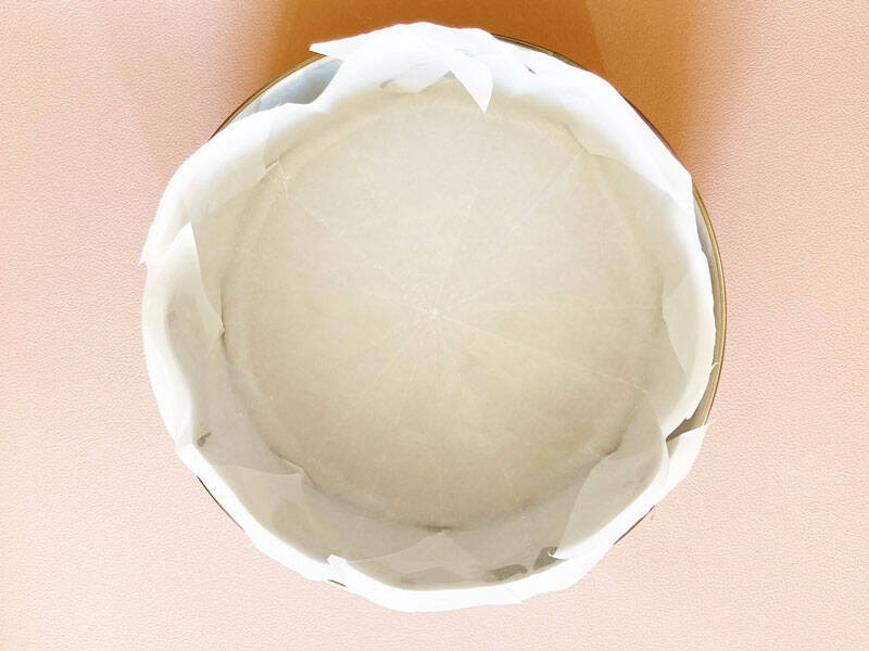 この方法で柔らかい生地を流し込むと、底部分とサイドのシートの隙間から生地が漏れ出てしまうことも。また、ケーキが焼きあがった時に、取り出しにくいといったデメリットがありました。