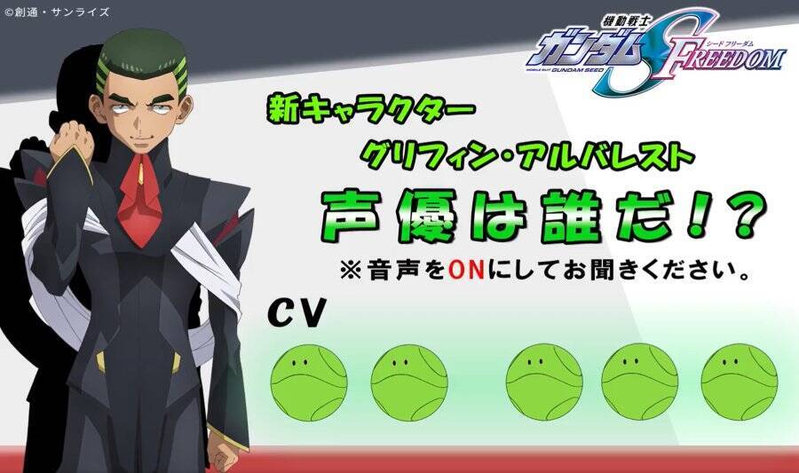 2024年1月に劇場公開を控えているガンダムSEEDシリーズ最新作、「機動戦士ガンダムSEED FREEDOM」。新機体や新主題歌、あらすじ&勢力図など、続々と新情報が明かされる中、いまだ謎に包まれているのがの新キャラクターである「グリフィン・アルバレスト」の担当声優。