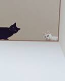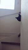 「2階からジー 様子をうかがう「人見知りにゃんこ」が可愛い」の画像