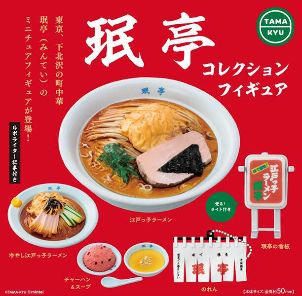 ブシロードクリエイティブのオリジナルカプセルトイブランド「TAMA-KYU(タマキュー)」より、東京・下北沢の中華料理店「珉亭(みんてい)」の店舗やメニューをかたどったコレクションフィギュアが全国のカプセルトイコーナーで発売されました。