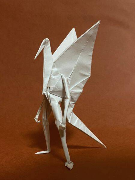 このツル星人、実はXユーザー「ARAK@ハイル紙」さんが折った折り紙作品。書籍「端正な折り紙」に収録されている、折り紙作家・笹出晋司さん考案の折り方を見て、制作したものとのことですが、その出来栄えは今にも動き出しそうなほど、美しく仕上がっています。
