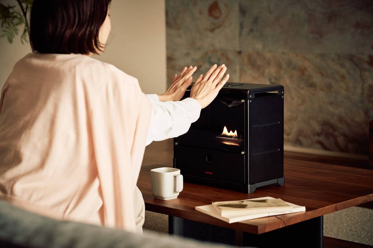 「MYDANRO」は、「炎との暮らし」をコンセプトにしたインテリア暖炉。特許出願中の燃焼構造により、焚き火の炎のゆらぎをイメージした柔らかく美しい炎を実現しています。暖房機ではないものの、手をかざすと心地よい暖かさがじんわりと伝わるそうです。