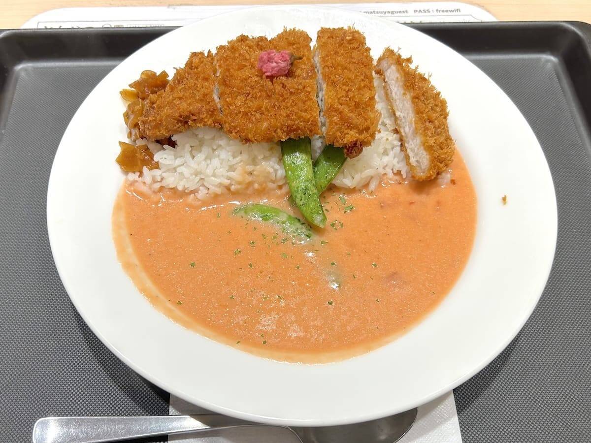 お皿の上で甘くないのはカツだけという状況で、もしノーマルの「桜クリームシチュー」を頼んでいたら、途中でかなり塩気が恋しくなっていたと思います。