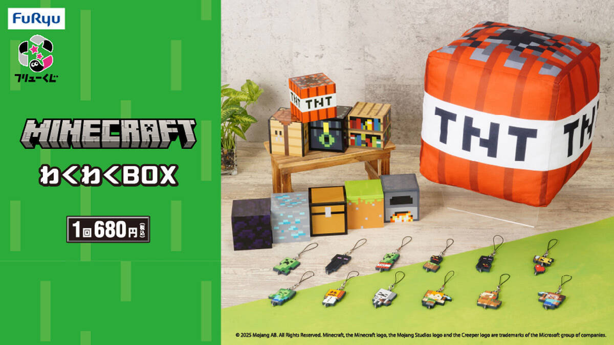 フリュー株式会社は、世界的な人気を誇るゲーム「Minecraft(マインクラフト)」をテーマにした新作くじ「フリューくじ マインクラフト わくわくBOX」を、5月10日よりファミリーマート、ホビーショップ、書店などで順次発売することを発表した。