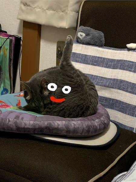 このあまりにスライムな猫ちゃんの姿に、コメント欄では「狩れぇーーーーー」「はぐれメタルより見つけるの大変」「ダークスライムですやん」といった声が続出。