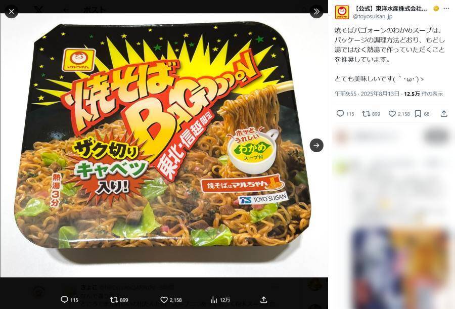— 【公式】東洋水産株式会社(マルちゃん) (@toyosuisan_jp) August 13, 2025