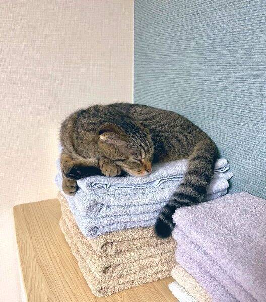 ふわふわで清潔、そしてほのかに温かい洗濯済みタオルは、猫ちゃんにとってまさに特等席といったところでしょう。その無防備な寝姿は、投稿を見た多くの人の心を和ませる、癒やしの瞬間となったようです。