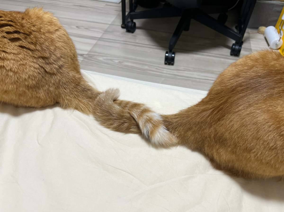 猫ちゃん同士が仲良く寄り添っている姿は、見ているだけで心が安らぐもの。Xでは、そんな猫ちゃんたちの「しっぽ」を使った愛情表現が話題となっています。