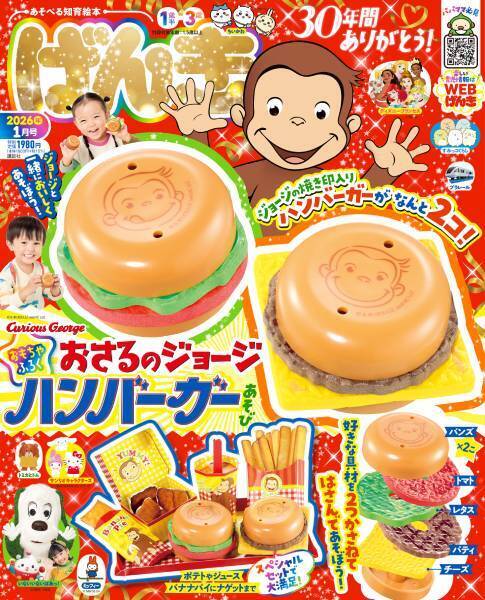 有終の美を飾る最終号(2026年1月号)の表紙には、「30年間ありがとう!」の文字とともに、大きく手を広げたおさるのジョージが登場しています。